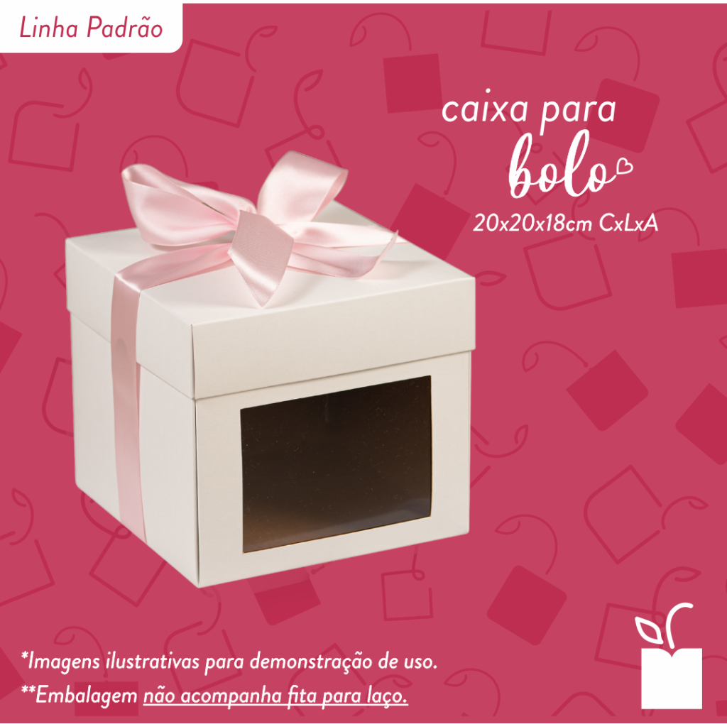 Caixa branca para bolo, tamanho 20x20x18cm, pacote com 10 unidades