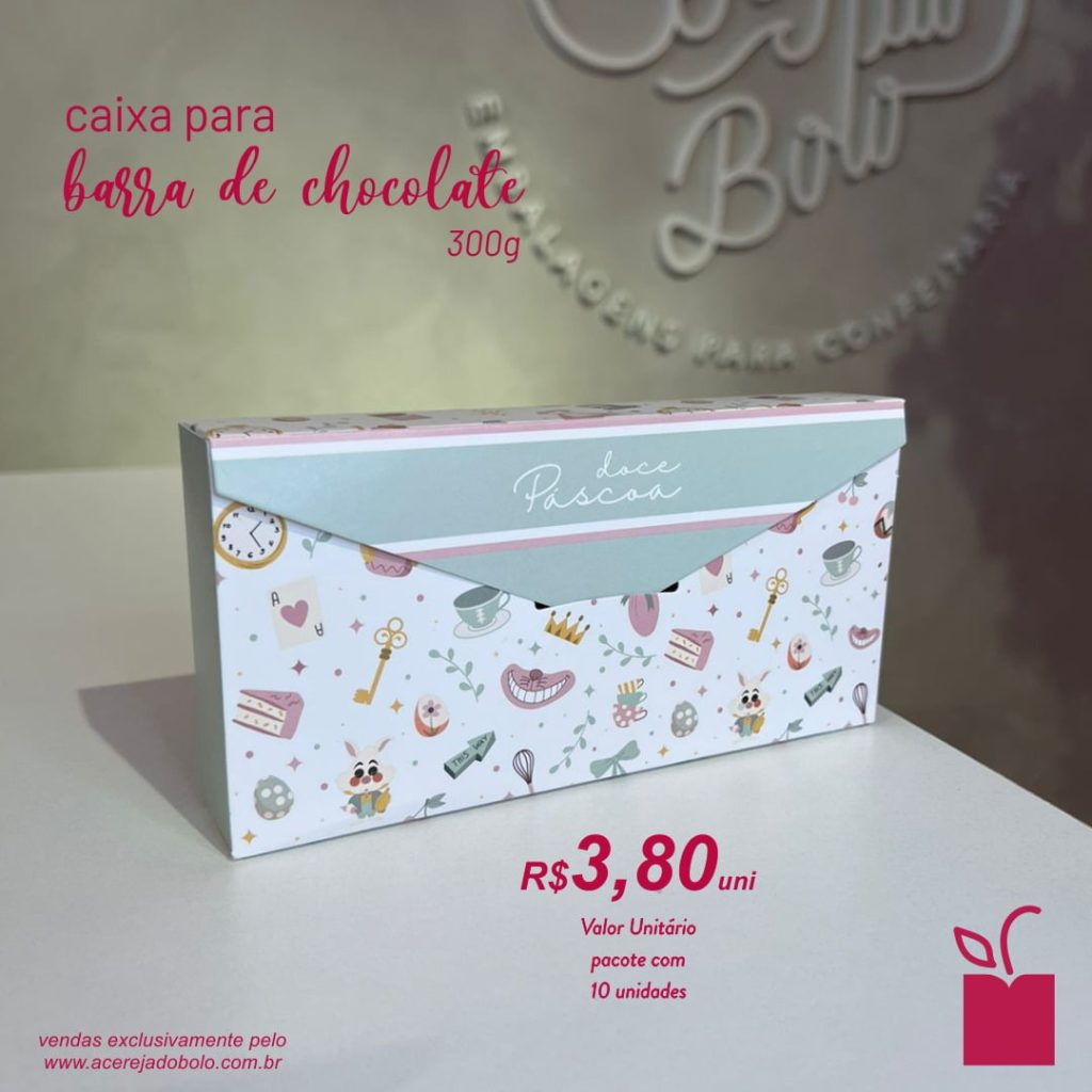Caixa para barra de chocolate 300g, ALICE, pacote com 10 unidades