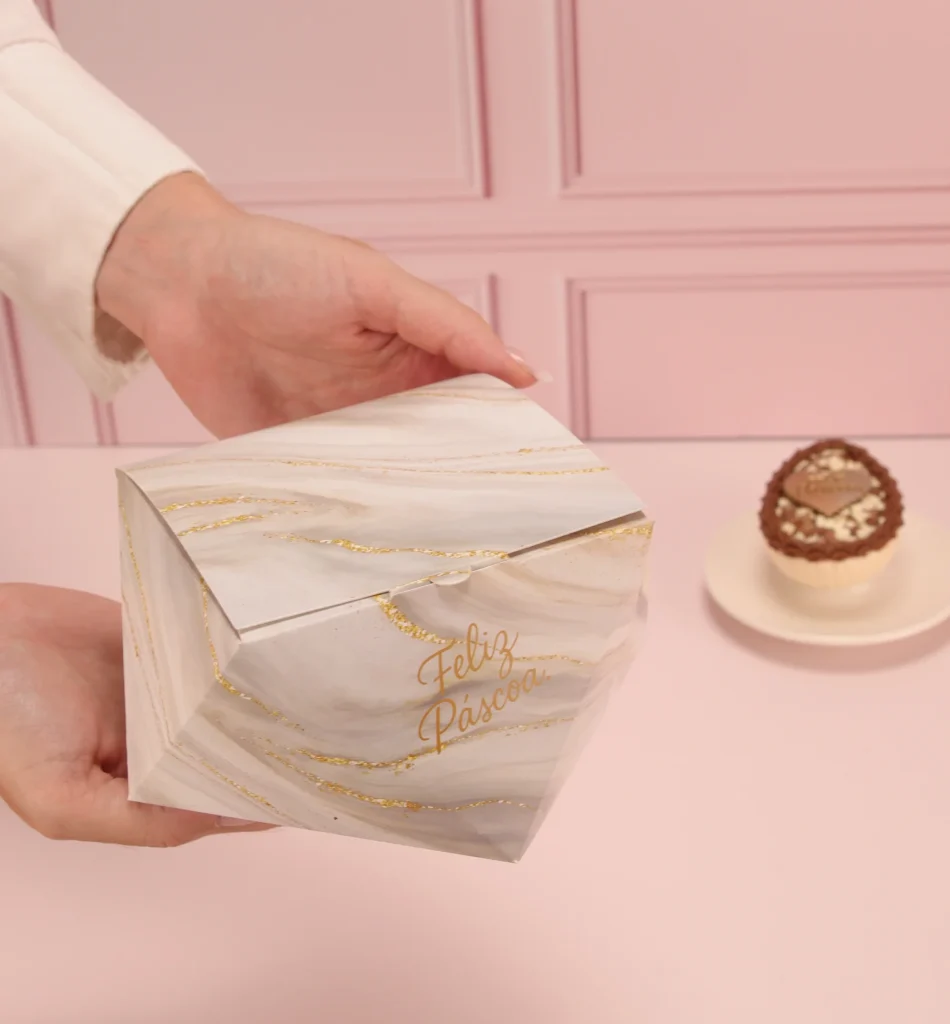 Caixa para 4 doces ou meio ovo 50g, MÁRMORE, pacote com 10 unidades