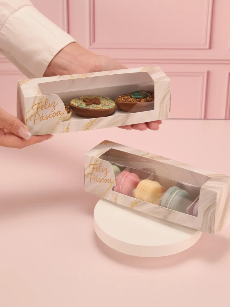 Caixa para 5 macarons ou trio de 50g, MÁRMORE, pacote com 10 unidades
