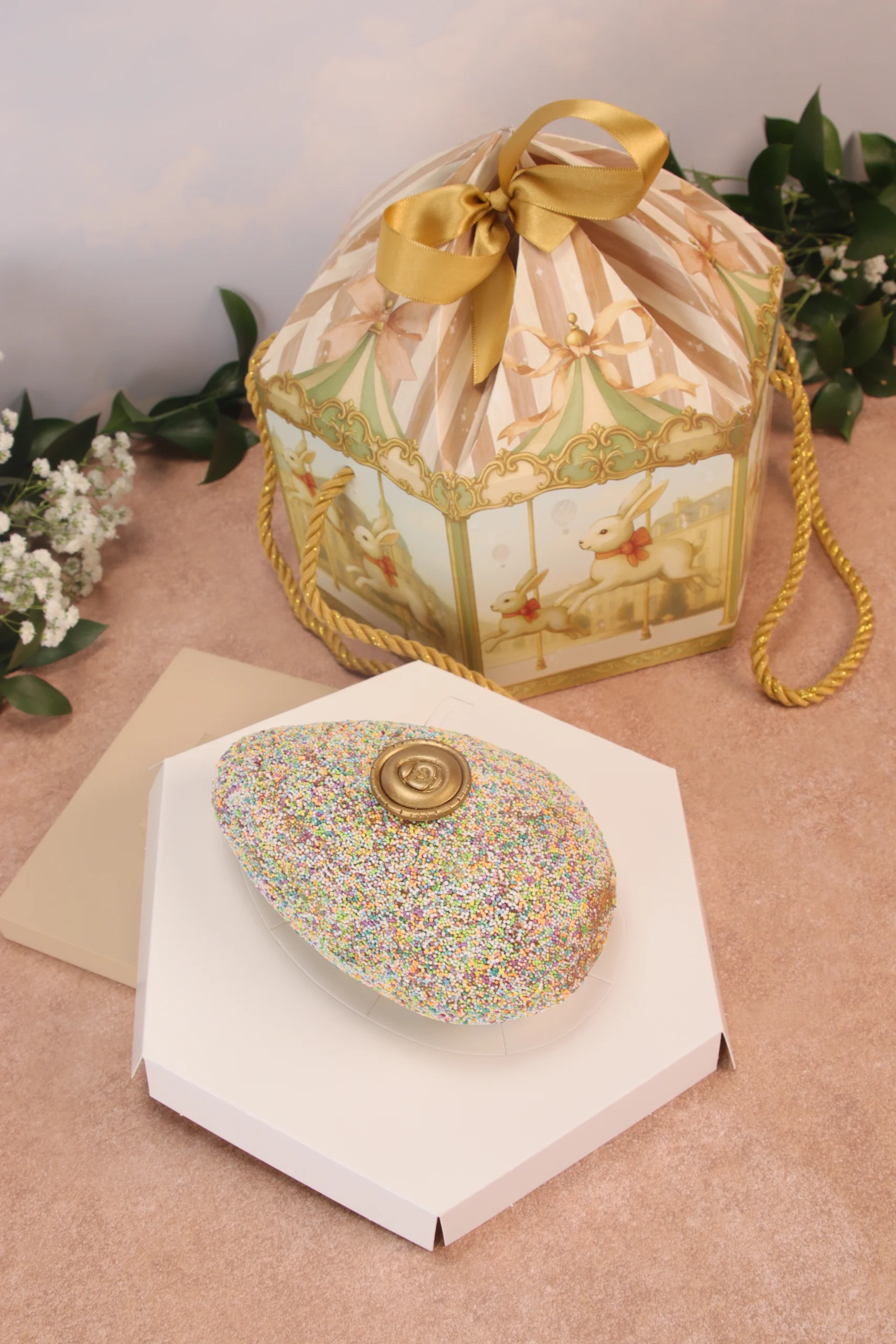 Caixa para drageados, CARROSSEL DE COELHOS, pacote com 10 unidades