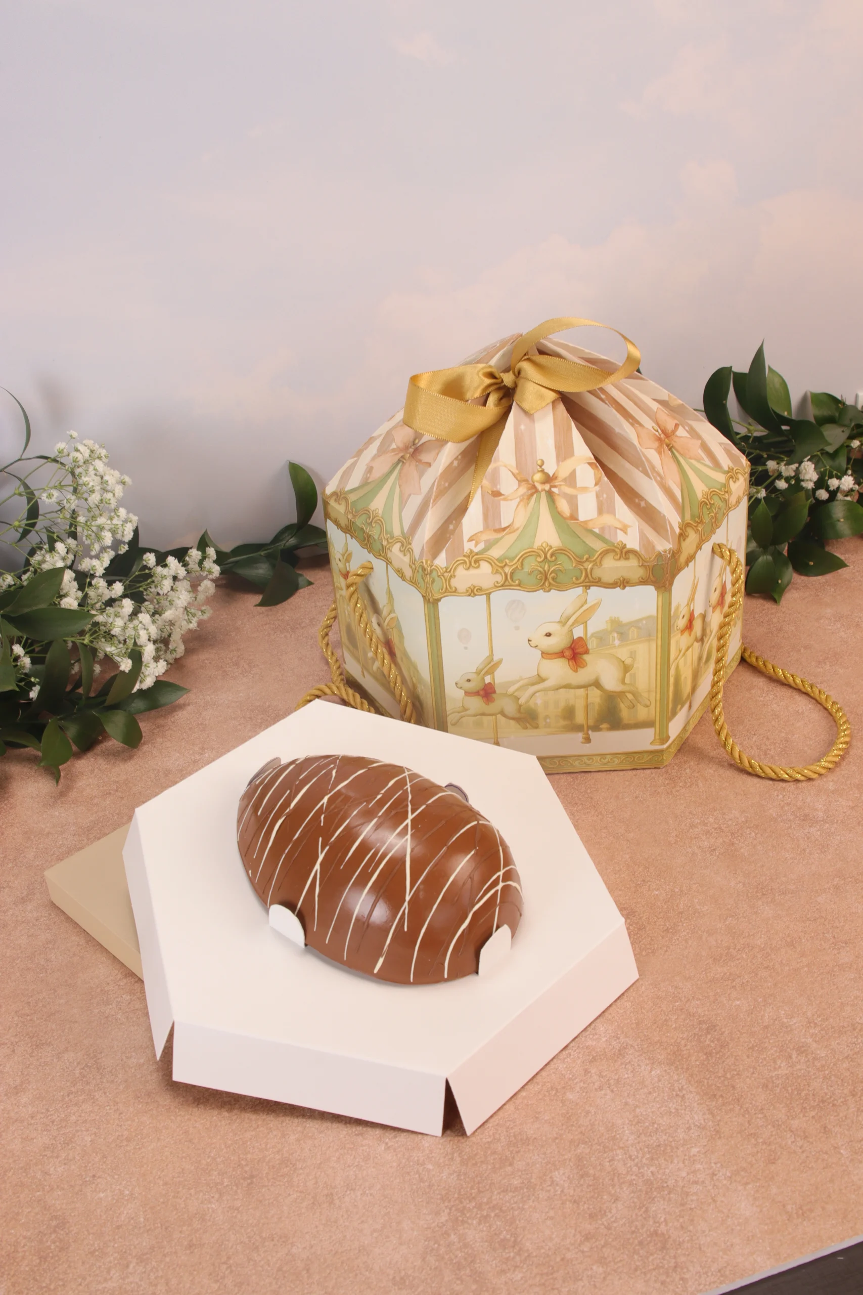 Caixa para drageados, CARROSSEL DE COELHOS, pacote com 10 unidades