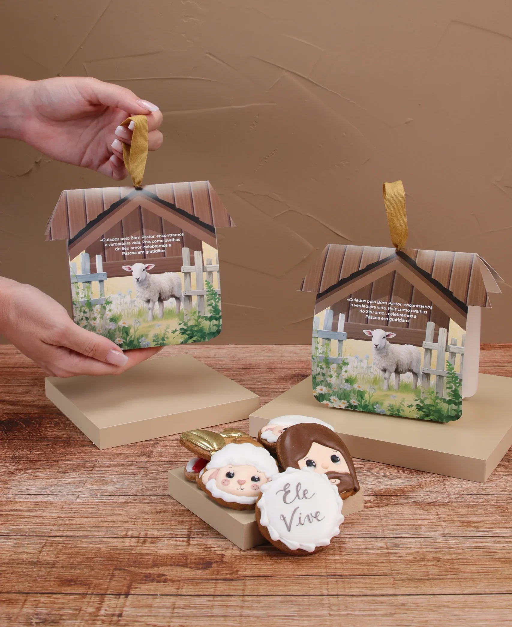 Caixa para mini biscoitos ou 3 brownies, SANTA CEIA, pacote com 10 unidades