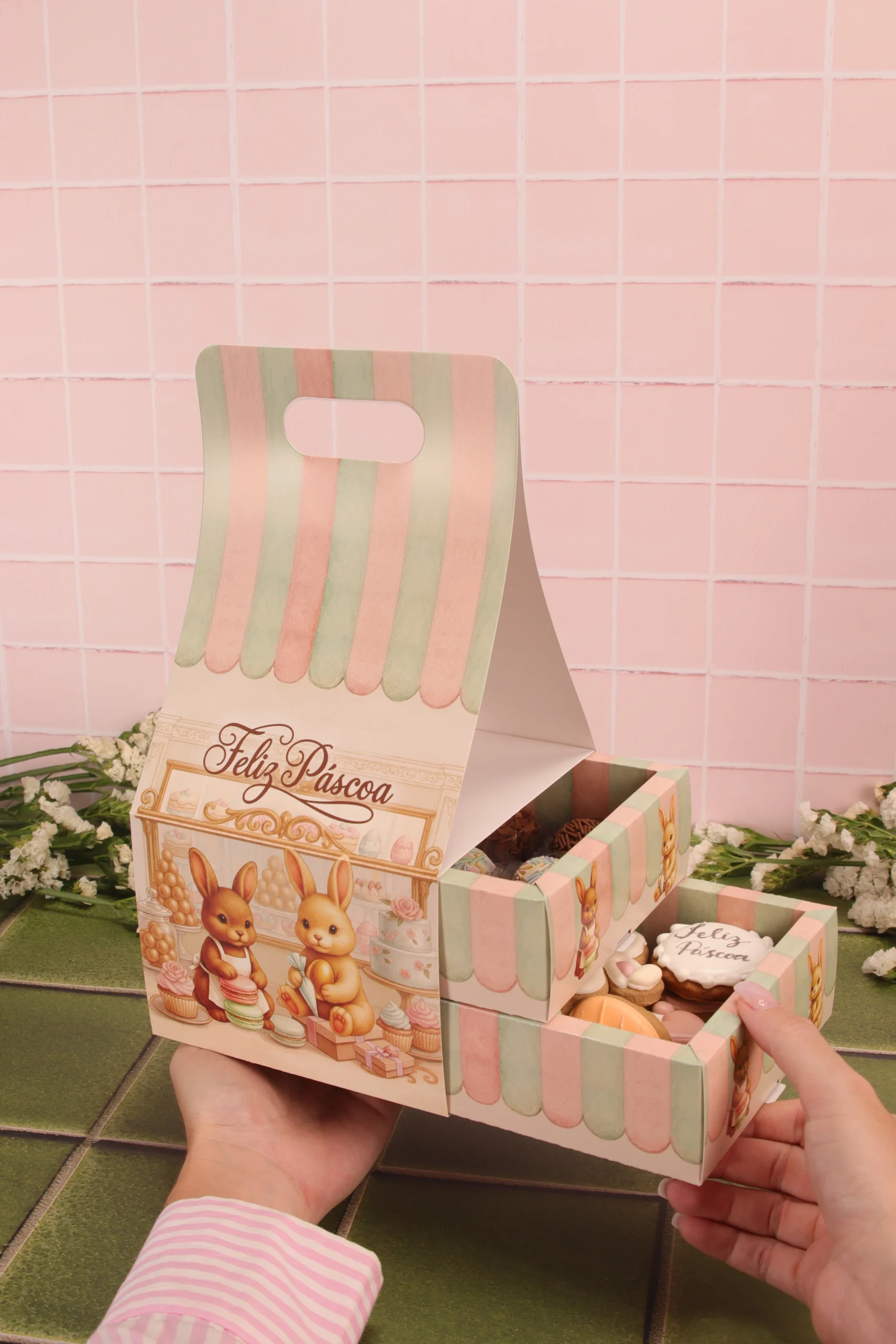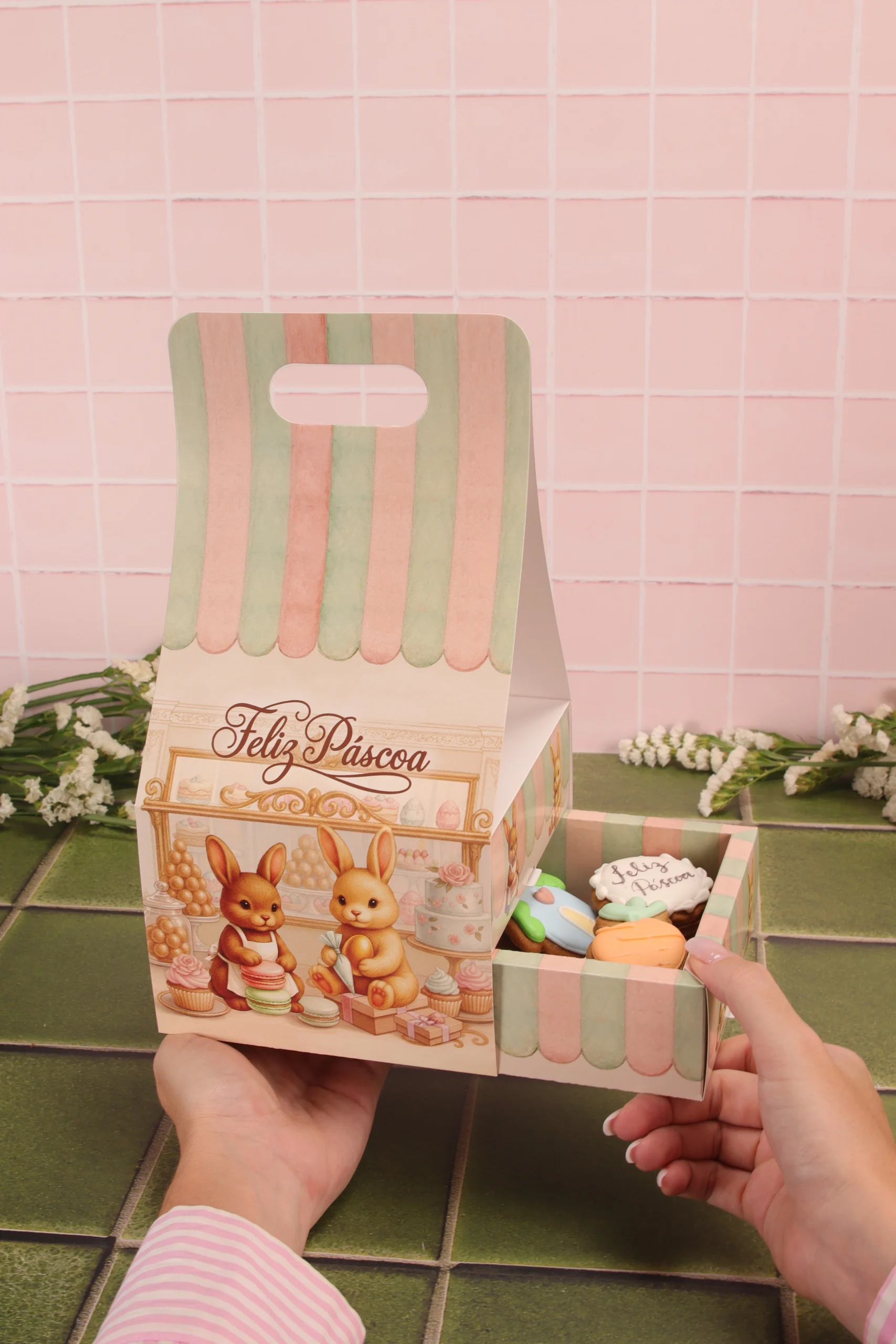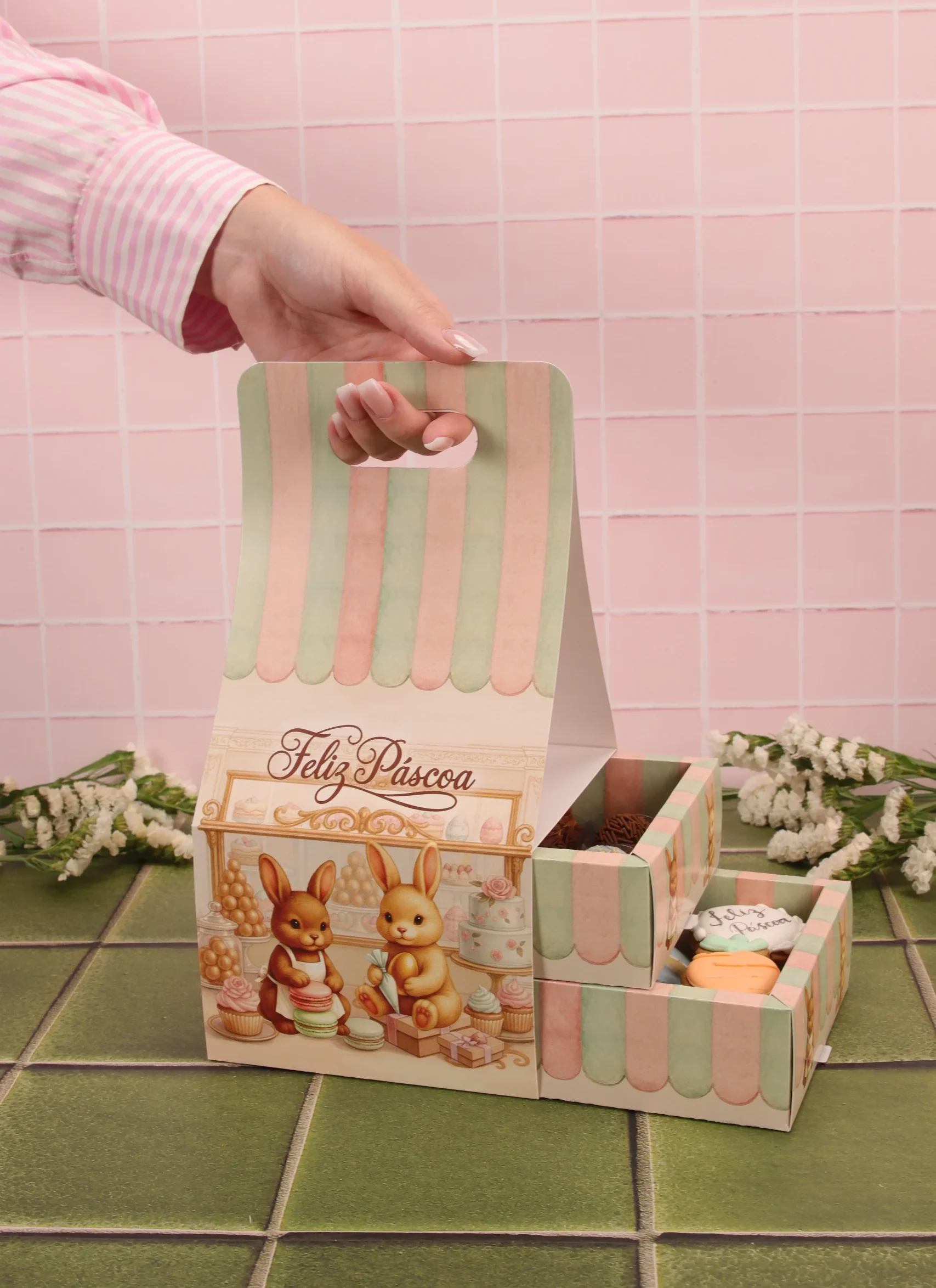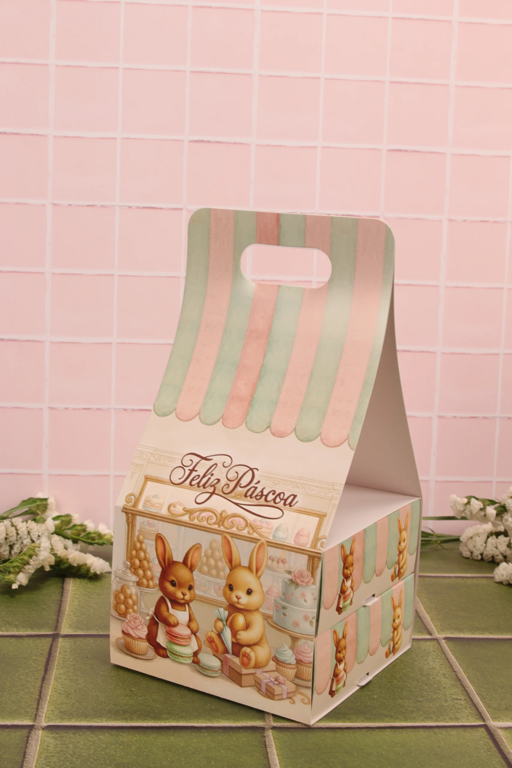 Caixa para drageados, CARROSSEL DE COELHOS, pacote com 10 unidades