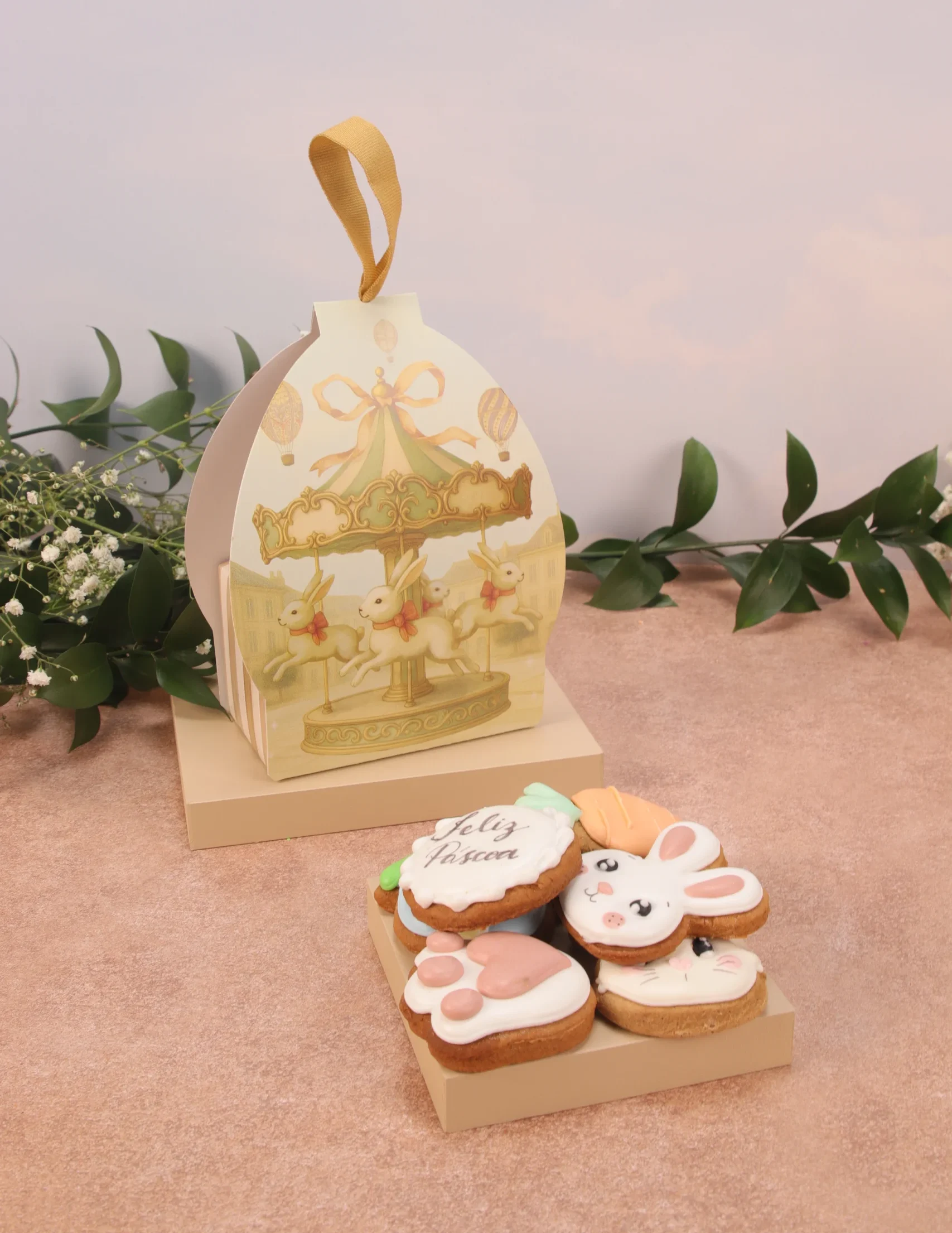 Caixa Oval, CARROSSEL DE COELHOS, pacote com 10 unidades