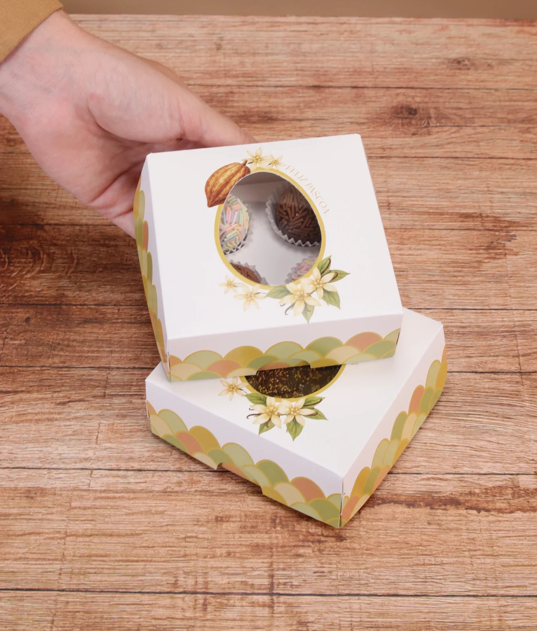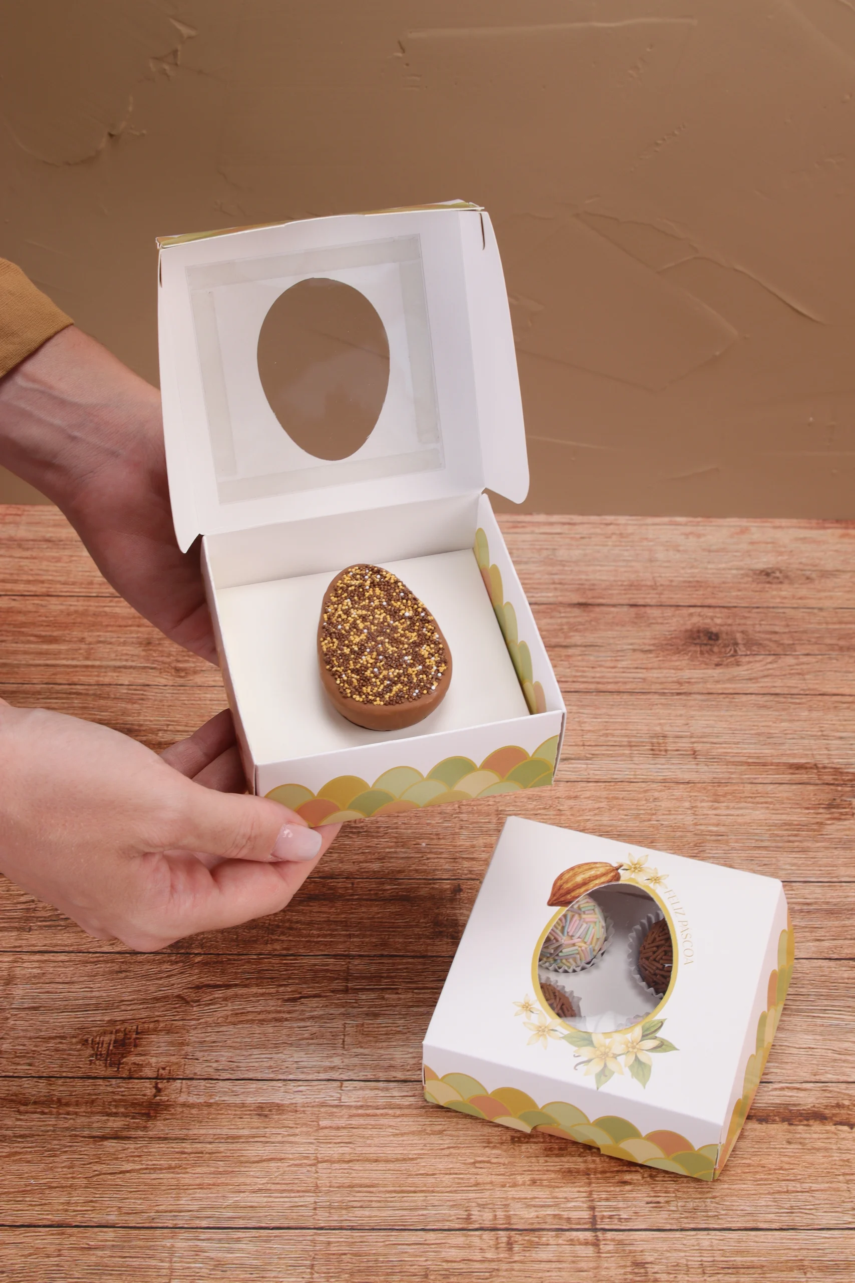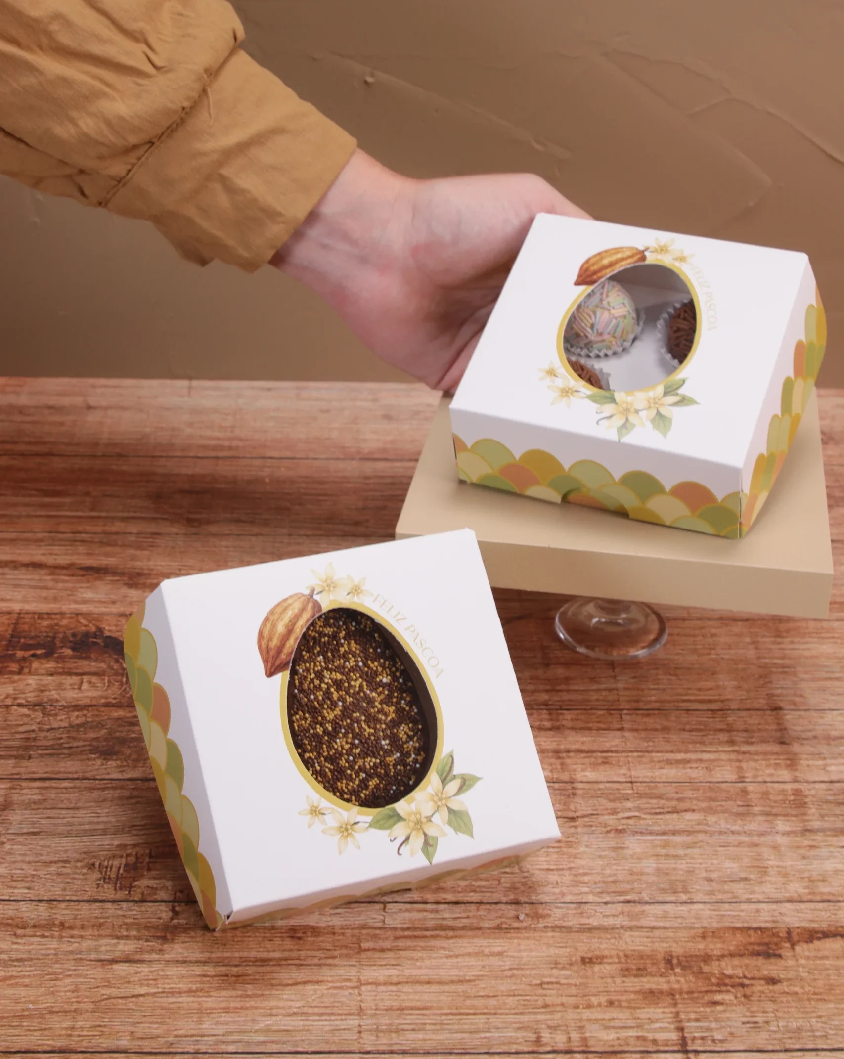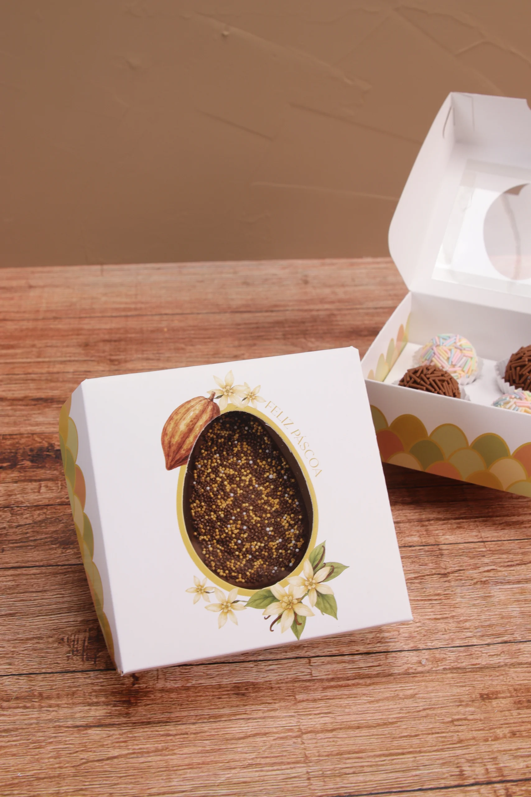 Caixa para 4 doces ou meio ovo 50g, CACAU E BAUNILHA, pacote com 10 unidades