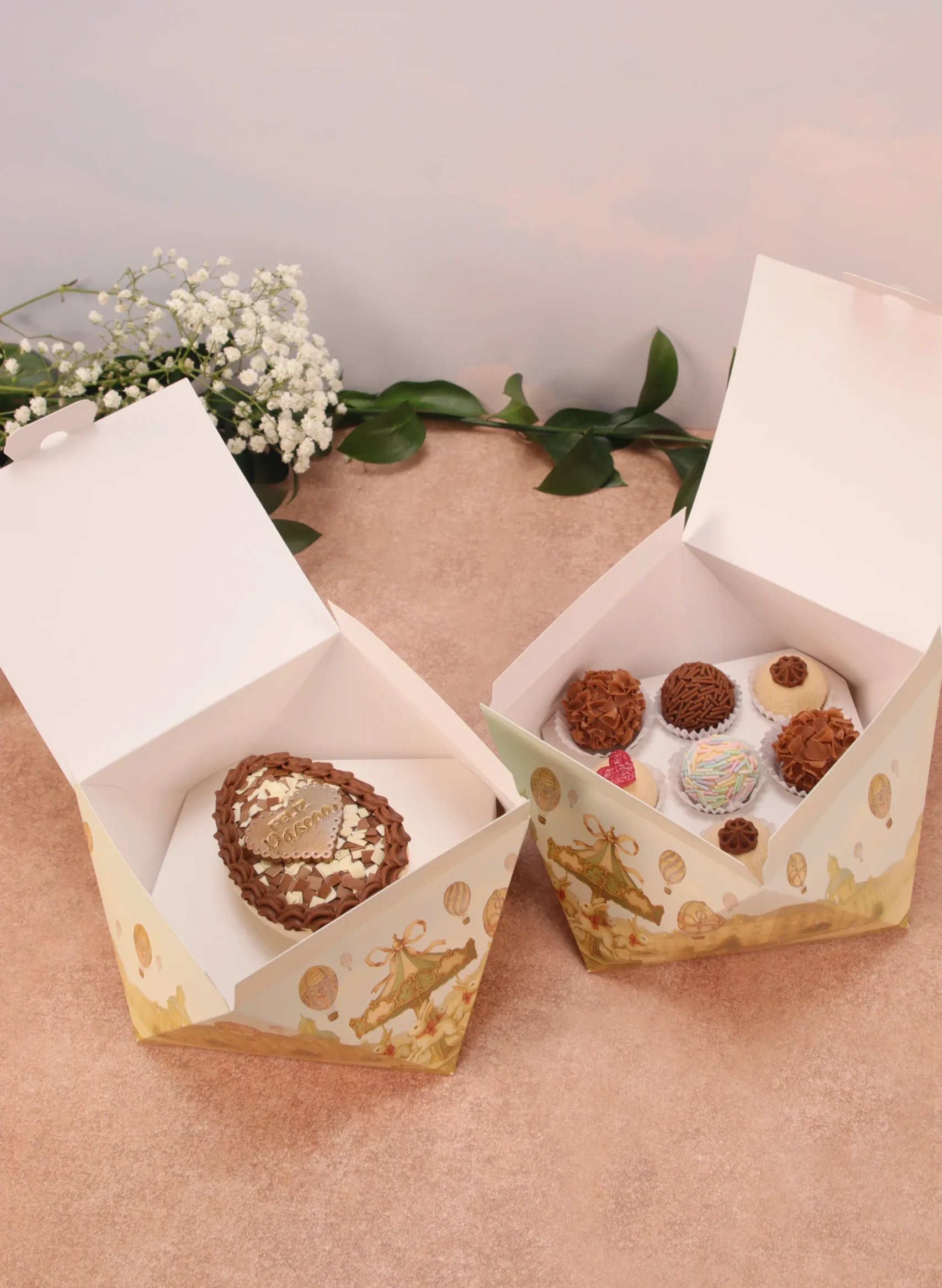 As imagens são ilustrativas para demonstração de uso (as caixas não acompanham os doces e não acompanham forminhas para os doces)