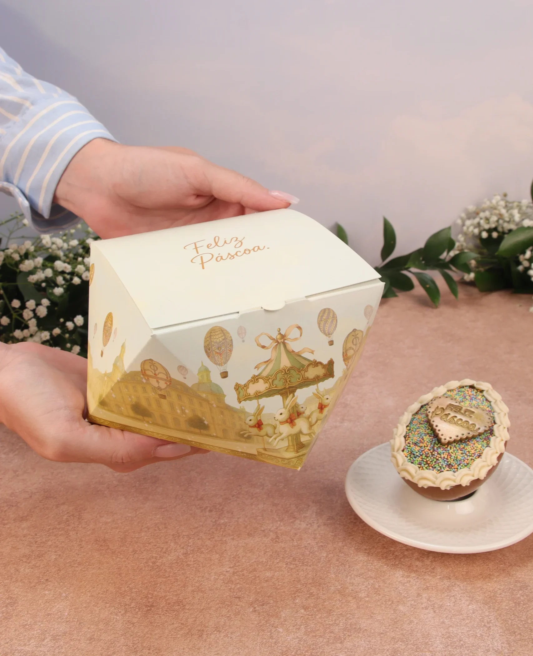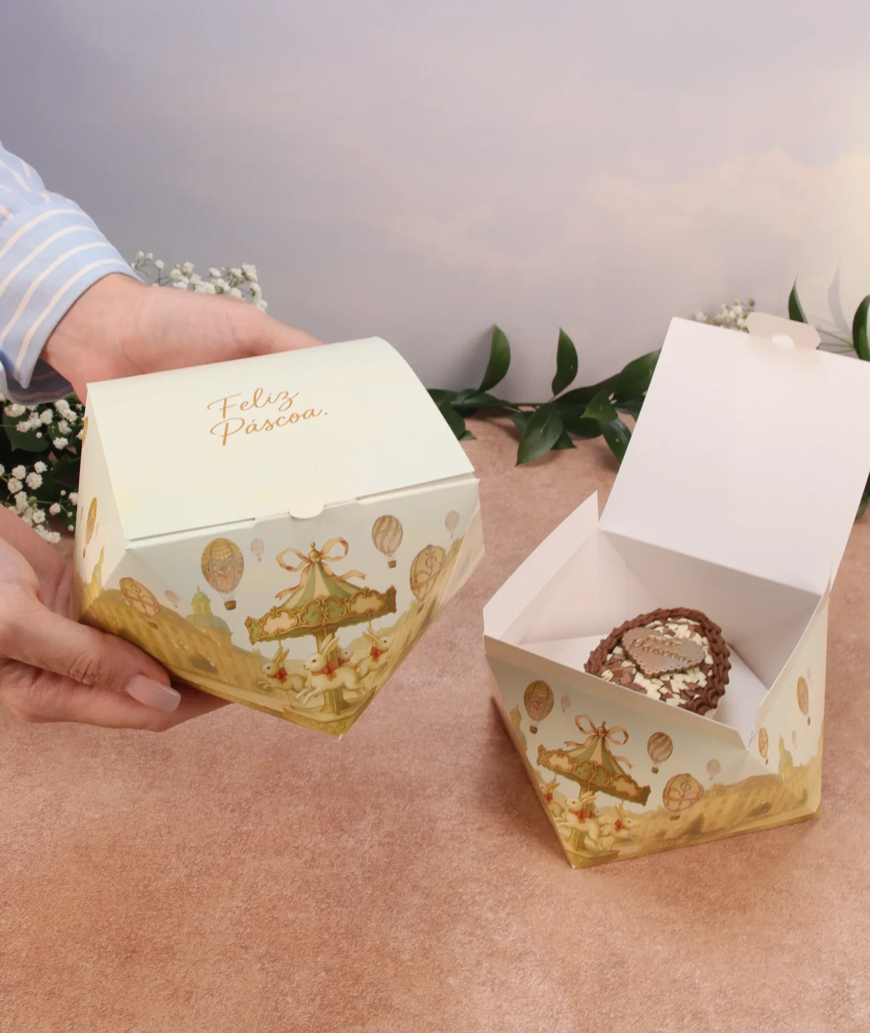 Caixa para 9 doces ou meio ovo 100/150g, CARROSSEL DE COELHOS, pacote com 10 unidades quantidade
