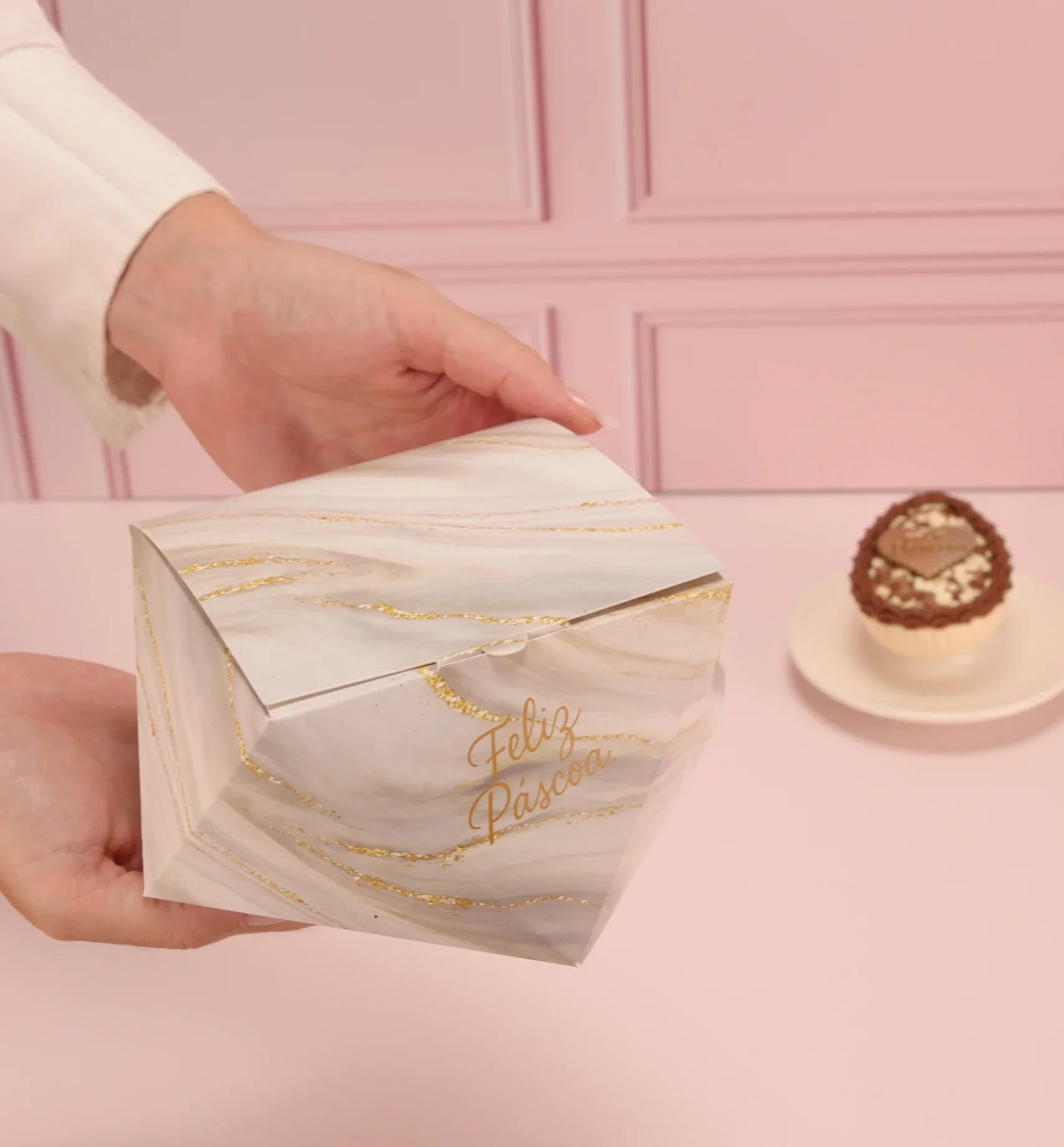 Caixa para 9 doces ou meio ovo 100/150g, MÁRMORE, pacote com 10 unidades