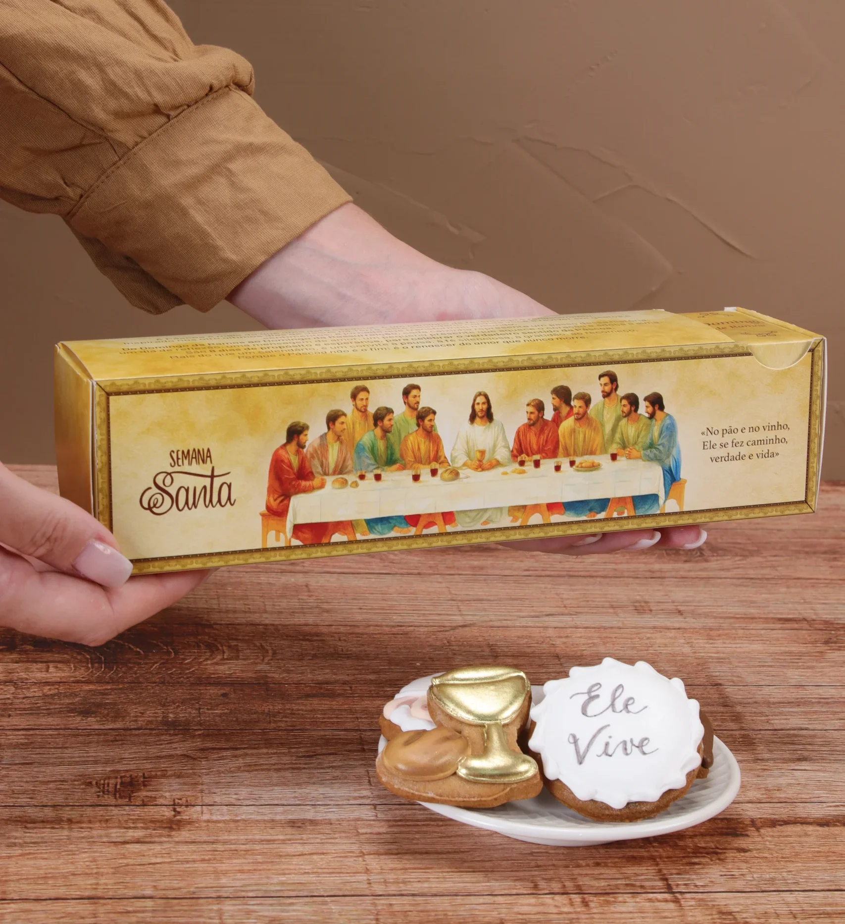 Caixa para mini biscoitos ou 3 brownies, SANTA CEIA, pacote com 10 unidades