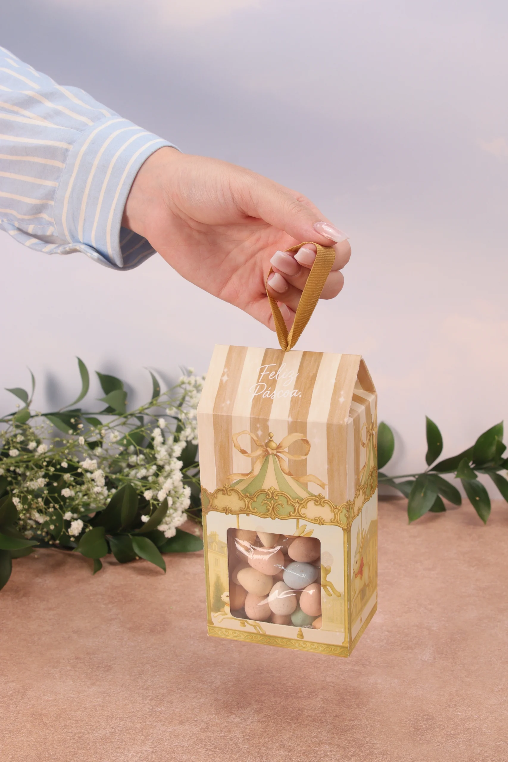 Caixa para drageados, CARROSSEL DE COELHOS, pacote com 10 unidades quantidade