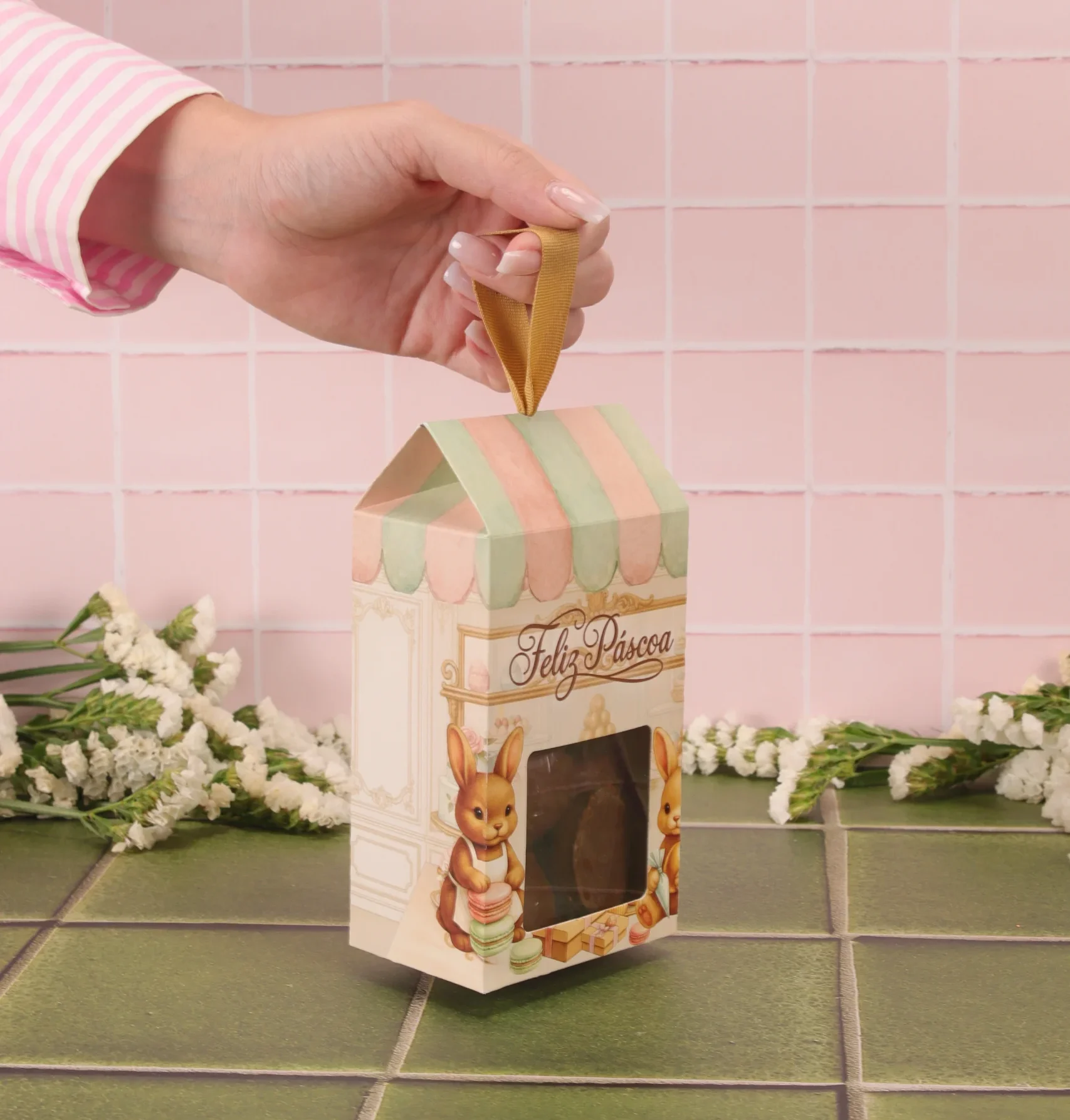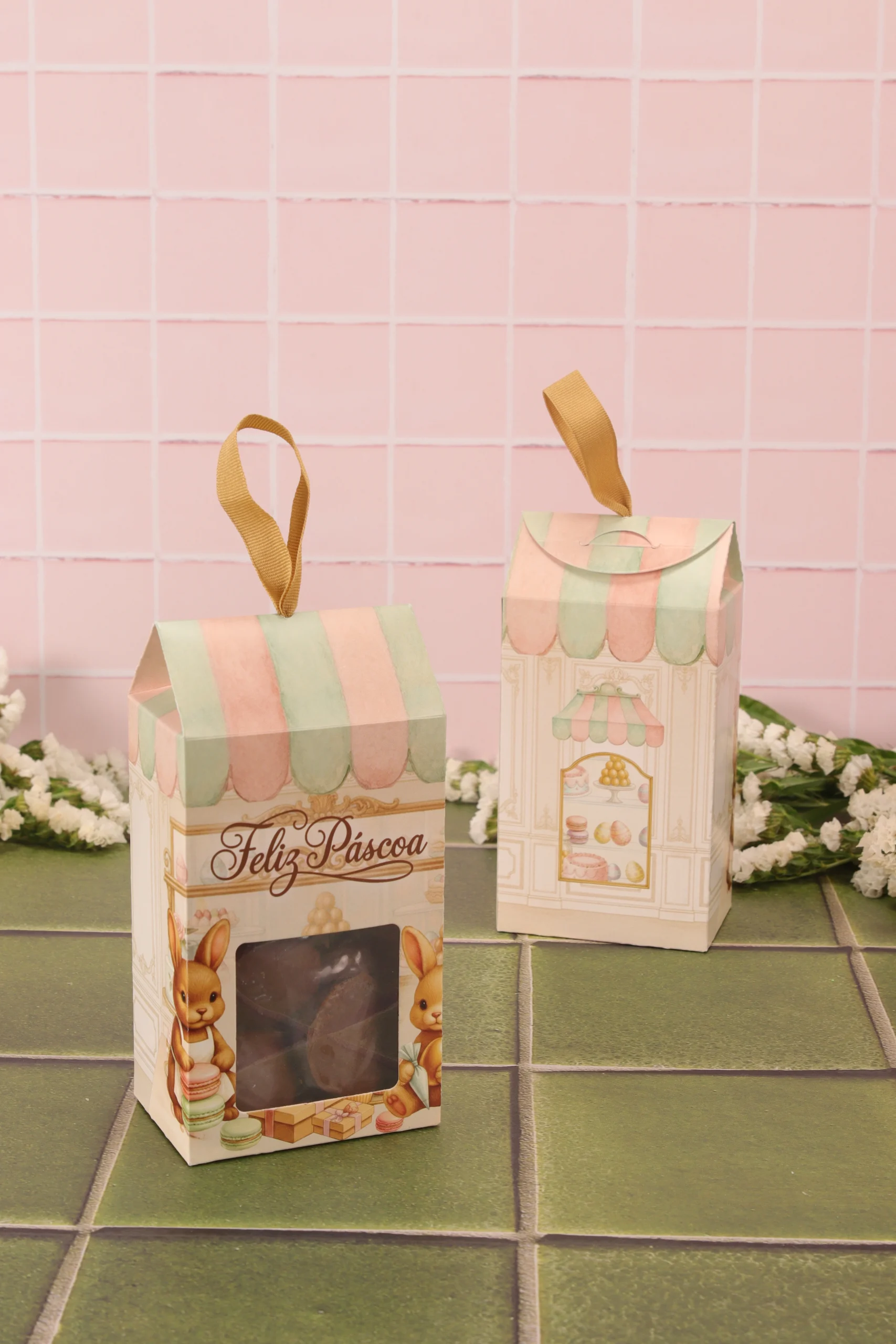 Caixa para drageados, CARROSSEL DE COELHOS, pacote com 10 unidades