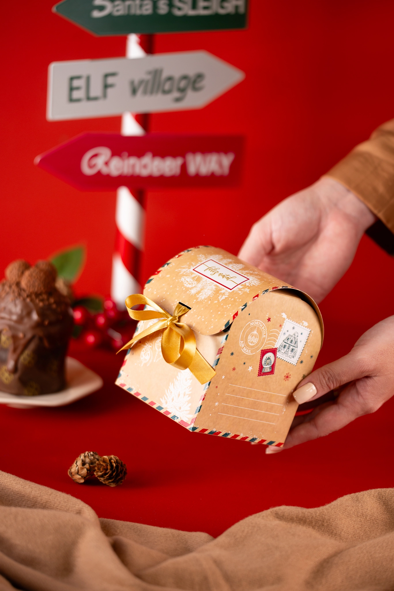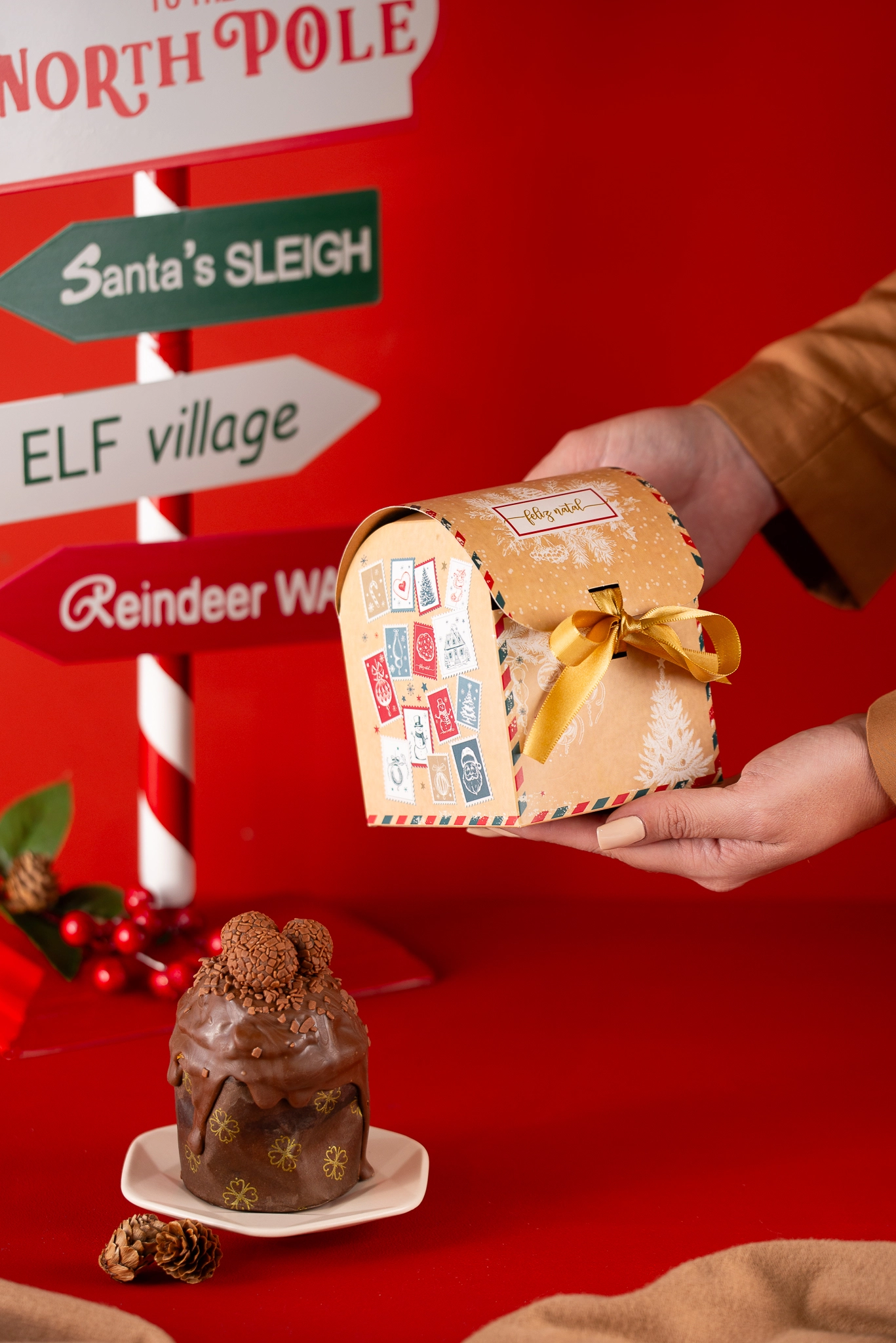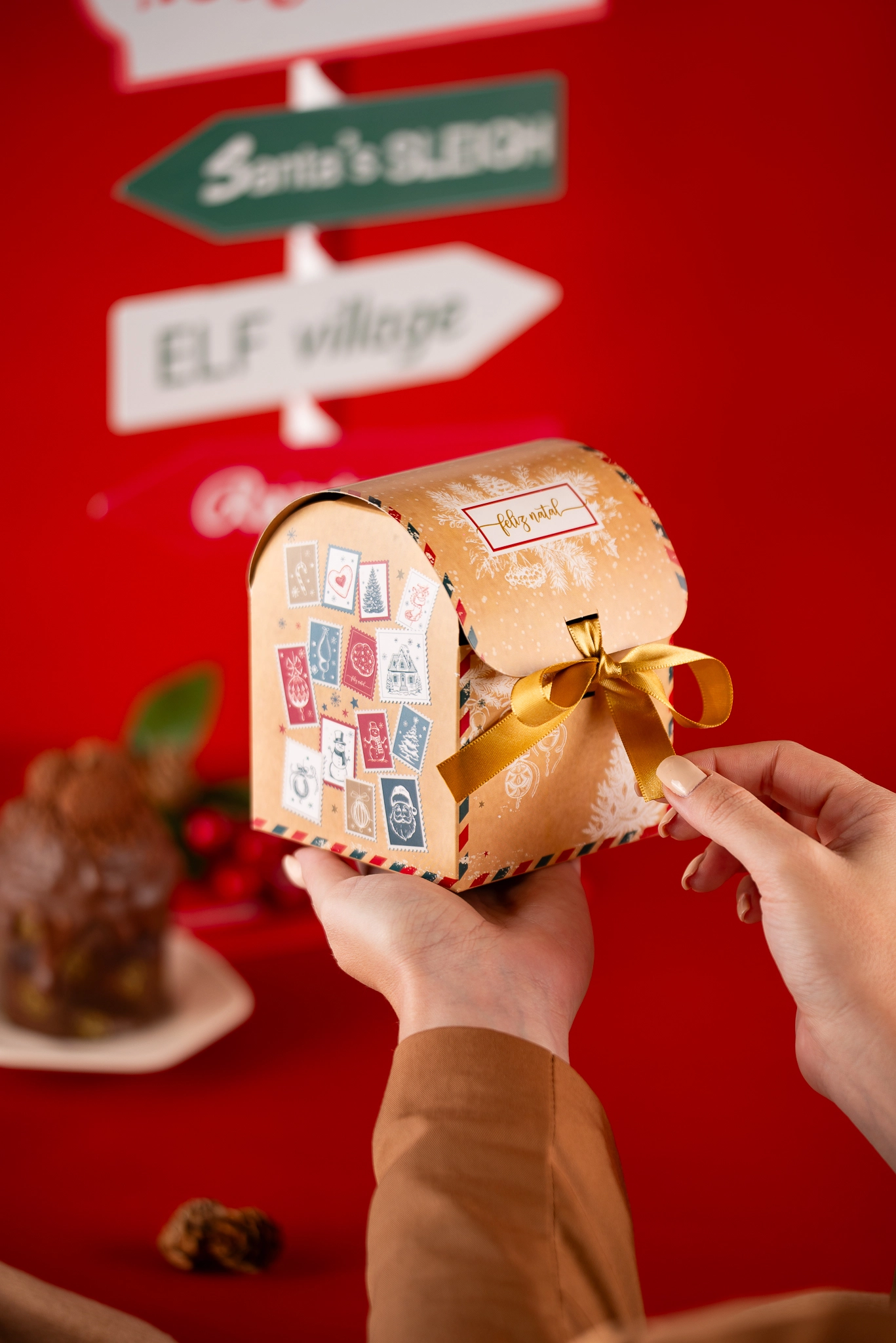 Caixa para mini panetone 100g, CARTAS DE NATAL, pacote com 10 unidades