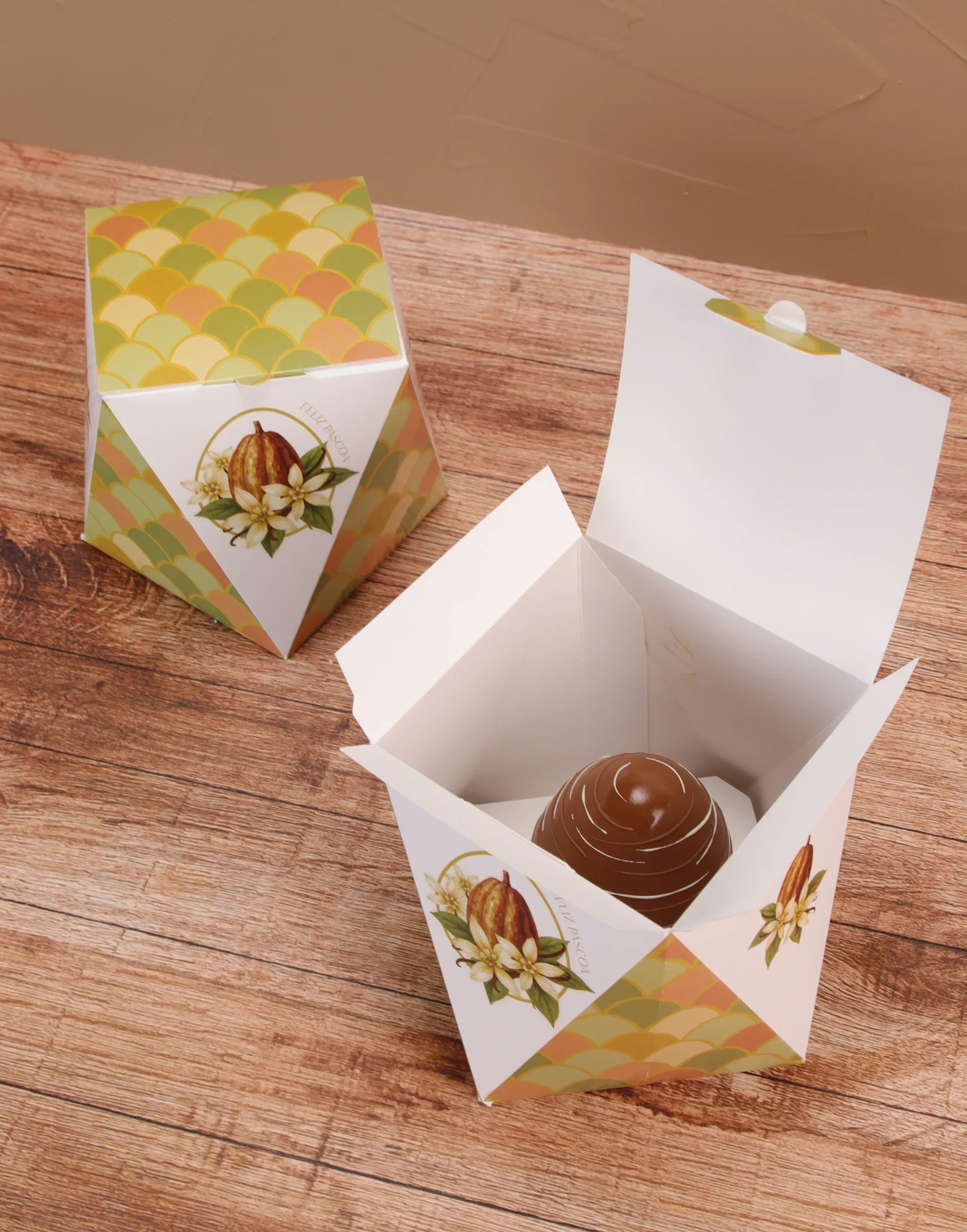 Caixa para ovo em pé 150g, CACAU E BAUNILHA, pacote com 10 unidades
