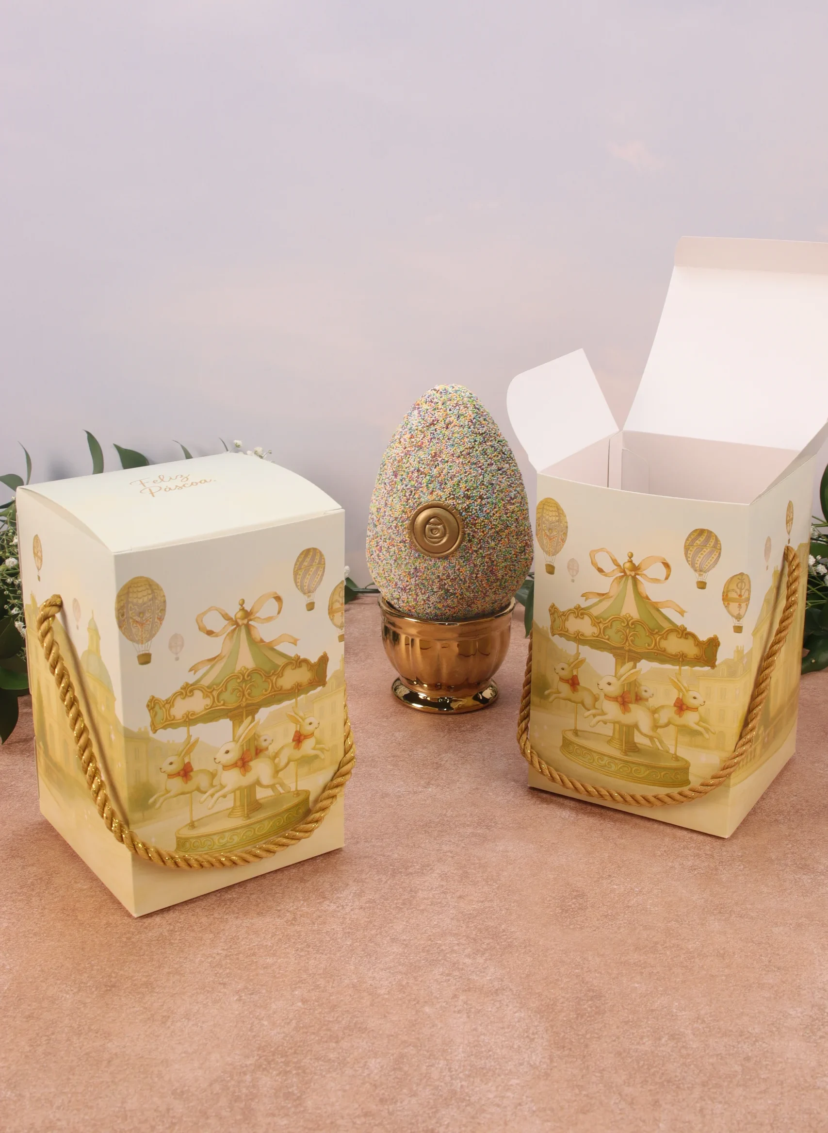 Caixa para ovo em pé 250/350g, CARROSSEL DE COELHOS, pacote com 10 unidades quantidade