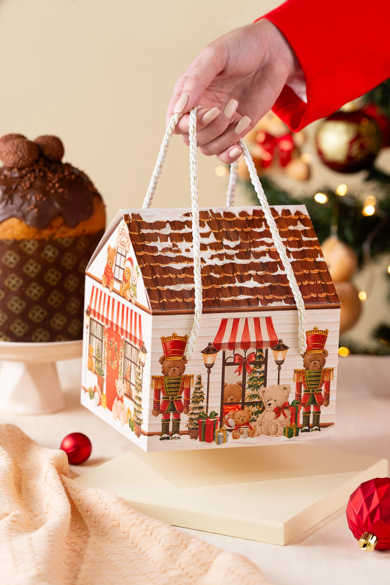 Caixa para panetone 500g, CASA DOS URSINHOS, pacote com 10 unidades