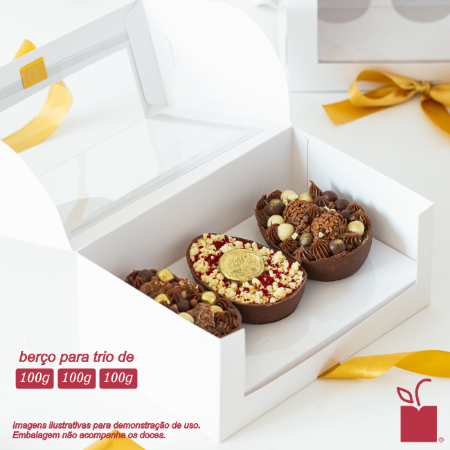 – Berço: Possui cavidade para acomodar três meia casca de 100g nos formatos BWB simples