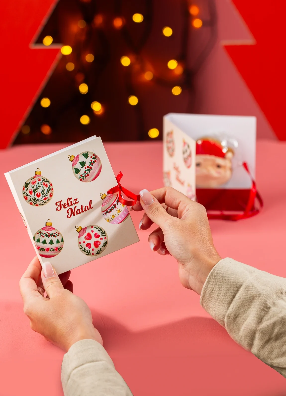 Cartão para biscoito ou barrinha, BOLINHAS DE NATAL, pacote com 10 unidades